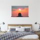 Striking summer sunset highlights classic lighthouse, on long lasting canvas print. Eye catching home décor, ideal for a conversation starter!
