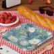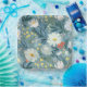 Wildflower meadow design on a blue background.