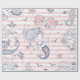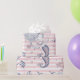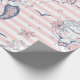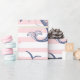 Little girl's mermaid under the sea themed birthday party wrapping paper. Blue and white with pink stripes.