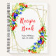 This beautiful and elegant recipe book features watercolor blueberries, strawberries, redberries and foliage on a gold geometric frame. The text combines handwritten script and serif fonts for a stylish and modern look. This makes a great wedding or bridal shower gift, a gift for someone special or for your own use in your kitchen.