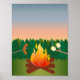 This design features marshmallows on a stick toasting over a fire. The background is a forest with a sky at dusk. The back of this card features a forest of trees. These posters would be great for a summer or outdoor camp. Click on Customise It to add your text. The Packenham wood font works especially great for this design.
