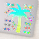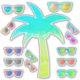 Custom summer sticker pack with big palm tree and mirrored sunglasses in bright colours. Includes 14 stickers.