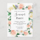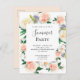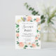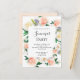 A summery invitation in white, coral and peach . A chic white background on the front. Decorated with large, lush watercolored flowers, florals in white, coral and peach. Template for your name and party information. The word Summer is written with a modern handlettered style script.