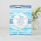 A delightful horizontal-line pattern of blues with white with a round centre decal that holds your party details. Perfect for a boy baby shower. (<a href="http://www.freepik.com/free-vector/watercolor-abstract-summer-pattern-background_1196817.htm">Designed by Freepik</a>). <br/><br/>The card is easy to customise with your wording, font, font colour, paper shape options and choice of six paper types.<br/><br/>Not exactly what you're looking for? All our products can be custom designed to meet your needs at no extra charge.<br/><br/>Simply contact us at askcottonlamb@gmail.com.<br/><br/>Coordinating products available: Just ask us!