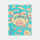 Summer pattern on turquoise background: umbrella,s fleece blanket