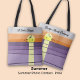 Designed as a prize or promotional item, this all-over-print tote captures the joy of summer with a stylised beach sunset and a sky fading. The top fifth carries the contest tagline placeholder “A Smile Travels” in Bandakala font, on a grey background, and the back offers space for your hashtag or company info.