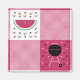 As an homage to the tasty treats of summer, this classic picnic tablecloth pattern is adorned with a slice of watermelon surrounded by ants and seeds in the white squares and a kettle grill framed by steaks, mushrooms, and charcoal pieces in the other.
