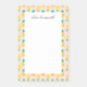 Chic personalised notes feature a border of summery golden yellow watercolor pineapples on a blush pink background, with your name or choice of personalisation in handwritten script lettering.