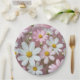 Delicate pink and white daisy flowers with yellow centres are set against a soft, blurred pink background
