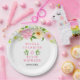 Summer Pink and Yellow Flowers and Foliage Wedding Paper Plate
