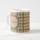 Posh plaid meets the bright colours of summer with this pattern of purple, teal, coral, pink, and sand. Customise the monogram with the appropriate initials for a personalised touch. This mug is available in jumbo, espresso, and bone china sizes and styles.