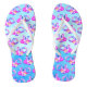 Fun modern summer pool party flip flops. Cute pink flamingo, beach ball and pool ring. Trendy watercolor design. Perfect for beach or pool.