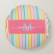 Summer Rainbow Stripes Monogram Script Round Cushion