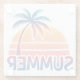 Summer retro sunset palm tree glass coaster