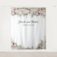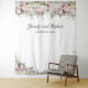 Add a fun photo backdrop feature at your wedding reception, engagement party, bridal shower or other special event with this custom tapestry. Irresistible pink roses and mixed garden blooms with trailing leaves and branches frame the upper and lower edges of the design. The text may be personalised with your names and wedding date or any other text you desire. This tapestry is available in a variety of sizes and is shown here in the extra large size.
