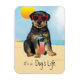 It’s a dog’s life! Be cool and celebrate the dog days of summer with this cute Rottweiler puppy wearing sunglasses and relaxing with a drink.