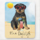It’s a dog’s life! Be cool and celebrate the dog days of summer with this cute Rottweiler wearing sunglasses and relaxing with a drink.