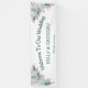 Summer Sage Wedding Banner designed with clusters of soft pastel Pink and Sage Green floral, with Sage Green text on a white background. The text includes: Welcome To Our Wedding, and The Bride and Groom's Names. To personalise, simply insert the Bride and Groom's Names into our easy template, replacing the sample text. Be sure to view the complete Summer Sage Green Floral Wedding Collection for matching stationery and accessories.