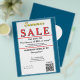 Jewelry or any business type supplies. Ocean blue and white background. Insert Sale price and date details. Upload Your Logo, or delete to leave area blank. Insert Name and Website or other contact QR Code. Summer written in yellow script. Sale written in large red typography. Thank You is written inside large white heart on backside. Original Design by TamiraZDesigns.