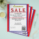 Jewelry or any business type supplies. Patriotic red, white and blue background. Insert Sale price and date details. Upload Your Logo, or delete to leave area blank. Insert Name and Website, Social Media Handle, or other contact QR Code. Summer written in yellow script. Sale written in large red typography. Thank You is written in white inside large red heart against deep blue background on backside. Original Design by TamiraZDesigns.