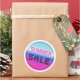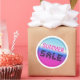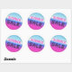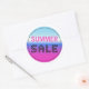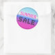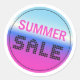 Summer sale round sticker with a holographic glossy gradient, bright pink colour and black dotted font