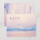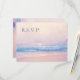 This beautiful beach wedding RSVP Response card features a gorgeous summer evening seascape from an original oil painting with a soft pink and violet hazy sunny sky and a clear aqua turquoise wave breaking on a sandy beach. Perfect for your beach theme wedding.
