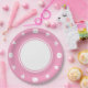 Add a pretty, coordinated touch to your rehearsal dinner, bridal shower, or even a more casual summer or beach-themed wedding with these paper plates, featuring a petal pink rim decorated with white sand dollars, starfish, and seashells and a white banded centre section. Be sure to check out the other products in the Summer Seashells in Petal Pink set to create a truly coordinated look for your event.