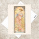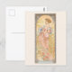 A postcard with the fashion illustration from the Art Nouveau Period, titled Summer (1900), by the Czech artist Alphonse Mucha (1860-1939). A fashionable woman in a pink dress in a meadow of flowers to personify the summer season. The Seasons or Four Seasons Series is the name of three different colour lithograph series produced by the artist. They were produced in 1896, 1897, and 1900.