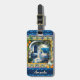 Summer, Sicilian Mediterranean oranges majolica blue monogram Luggage Tag. Beautiful An exquisite floral botanical citrus garden pattern inspired by the summer bright italian themed art of majolica Sicilian ceramic tiles in blue yellow colours. A fun style that is currently trending for home decor, clothes, mobile and Ipad cases, invitations and much more. You can change all text colours and fonts, click to customise further underneath the text customisation area this will take you into the design tool. A unique gift for birthdays, holidays and any special occasion. Whether for valentines day, Christmas or as a gift in general it makes a great gift idea