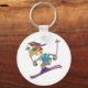 A person dressed for summer skiing down the slopes. This design looks really effective on these Keychain