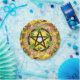 Bright Summer Solstice Sunflower and Elecampane floral collage design featuring brown watercolor pentacle, sunflowers, herbal Elecampane flowers, and a beautiful wheat wreath. Share a smile during your Summer Solstice Celebration with this bright and colourful design!