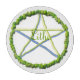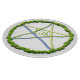 A sunshine yellow and sky blue pentacle is encircled by a stand of summer trees in this simple Litha design, which is one of my attempts to create pentacles depicting each of the 8 Wiccan holidays (sabbets)