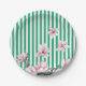 Summer, spring, green stripe magnolia print paper plate