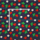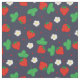 Summery fabric printed with red strawberries and white flowers over navy blue