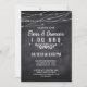 Rustic chalkboard and string lights I Do wedding BBQ invitations for vintage country wedding styles- Vintage chalkboard look background. Across the top are strands of romantic, twinkle string lights. Personalised with couple's names in coordinating, palest grey, handwritten style lettering that resembles chalk. An elegant scroll border separates the introduction and names from the country BBQ party details. Back has matching solid, deep grey chalkboard colour background, which may be changed to any colour. Note: All images are printed. Not actual chalkboard. Use the Customise It button to change anything - font styles, sizes, colours, or placement. Elegant rustic country couples BBQ invites complement vintage wedding themes, chalkboard wedding styles, rustic weddings, country weddings, modern black and white wedding colours, summer weddings, casual outdoor weddings, or barn weddings. Perfect BBQ invites for teachers. We have coordinating, rustic string light black and white wedding supplies and decor in our Zazzle.com/angela65* shop.