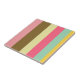 A vibrant and colourful striped design featuring a combination of warm and cool pastel shades. The stripes include shades of pink, brown, pale yellow, bright pink, mint green, and golden yellow, evoking a summer-inspired aesthetic. Perfect for design inspiration, creative projects, or mood boards.