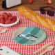Striped Retro Scooter Party Paper Plates. Designed by Anna-Marie Bush