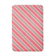 Bath mat in a striped pattern with a summer, beach feel, in light and medium coral pink accented with turquoise