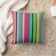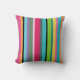 Vibrant stripes in shades of pink, red, yellow, green, purple, black, orange, turquoise, and more adorn this colourful throw pillow!