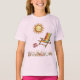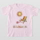 Summer T Shirts for kids. Bright shining sun, yellow, blue red and white striped beach chair, seashells and cute red & white flip flops.
