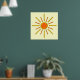 Summer sun with sun rays, in shades of warm yellow and orange.