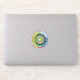 This beach themed mandala features layers of seashells, sailboats, sand, sun, sea, and palm trees inside of a transparent beach ball to bring to mind the fun that comes with summer.