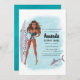 Trendy summer African American surfer beach girl bachelorette weekend invitation with itinerary invitation.