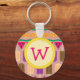 Rows of brightly coloured orange slices, zigzag-like watermelon wedges, and popsicles in grape, fudge, and orange cream shades sit on a pleasant coral background, creating a fun and cute pattern perfect for those hot summer days. Customise the monogram on this keychain with your initial to make it uniquely your own.