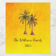 Tropical Bright Gold summer swim party wine label, with a palm trees illustration design and black customisable lettering. Great for planning your picnic pool party with a beach theme.