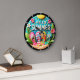 Vibrant wall clock design featuring summer-themed elements like flip flops, tropical flowers, and a sun. Perfect for adding a playful touch to seasonal decor or beach-themed interiors.