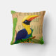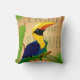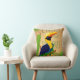 Give a tropical atmosphere to any room in your home or office with this green decorative throw pillow. It features a Hornbill, a tropical blue and yellow bird tropical and greenpalm leaves pattern on a beige background. This pillow will surely liven up any space!