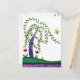 a beautiful summers day with this whimsical drawing of a tree on a rolly hill with a few flowers and a bee as happy as can be flying near.