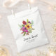 Summer beach destination wedding favour bags featuring a classic white background that can be changed to any colour, watercolor tropical flowers, palm leaves, and an elegant sweet favour template.