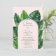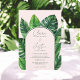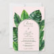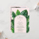 Celebrate your special day with this tropical greenery wedding invitation, featuring lush green palm and monstera leaves against an editable soft pastel pink background. Add your couple photo at the back. The elegant script and modern layout make it perfect for a summer beach wedding, destination ceremony, or tropical garden celebration. A fresh and stylish way to invite guests to your big day!
